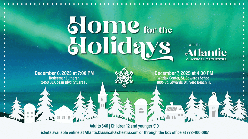 Celebrate the season with the Atlantic Classical Orchestra’s Home for the Holidays concert. Now in its 3rd year, this festive performance brings the joy of live holiday music to life with beloved classics, sparkling orchestral favorites, and timeless carols. It’s a warm, magical way to kick off the holidays with family and friends and make memories together. For more information, visit their website!