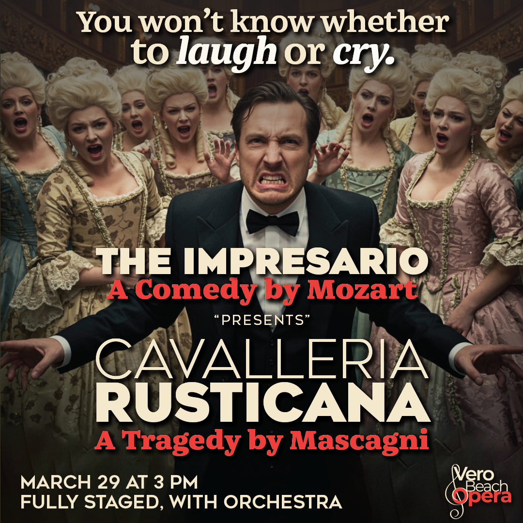 Vero Beach Opera presents THE IMPRESARIO and CAVALLERIA RUSTICANA, fully staged with the Brevard Symphony Orchestra and English Supertitles.